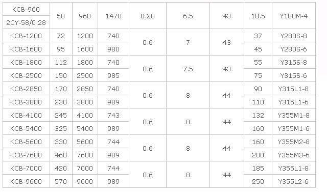 KCB,2CY齒輪油泵參數(shù)
